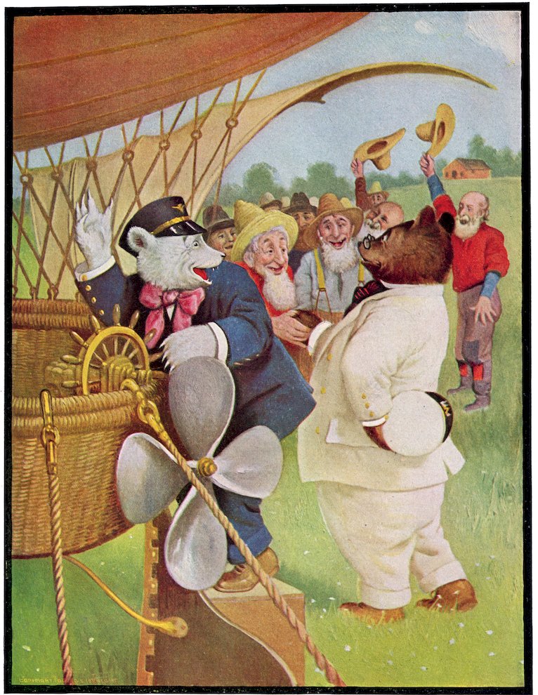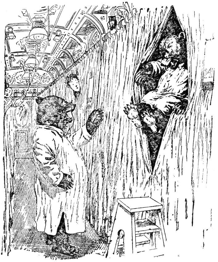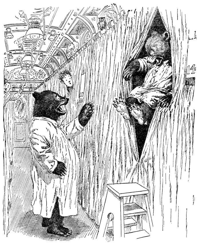 This book records in complete detail the wonderful trip of the Roosevelt Bears from their cave in the Rocky Mountains to New York City. It tells how these Bears entertained their animal friends at home, of the exciting race to catch the Pullman train, the eventful night on the sleeping car and the exciting adventures on the Kansas farm. Of the day spent in rollicking fun at the district school, the adventures at the county fair and the overnight trip in the balloon which took them from Missouri to Chicago, where they landed in Lincoln Park and spent some days in entertaining the children of that city, and seeing all the points of interest, including the Athletic Club and a modern department store.