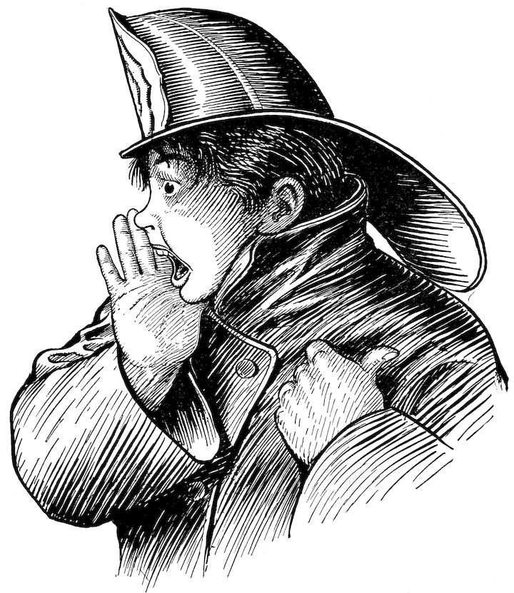 | “They climbed up ladders in clouds of smoke, |