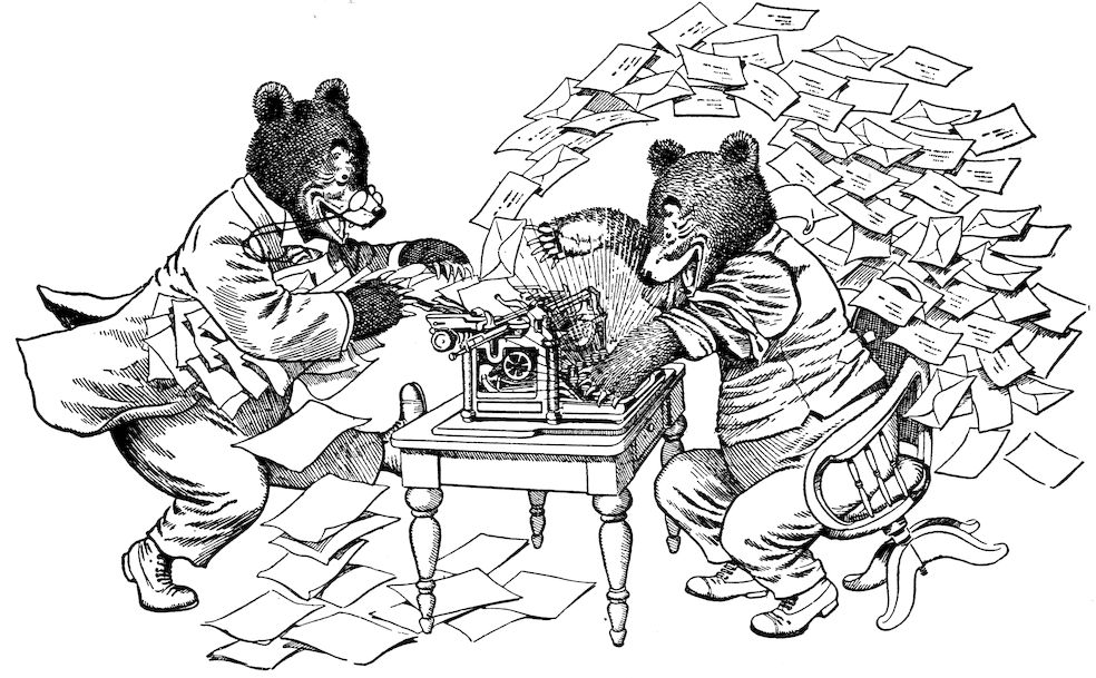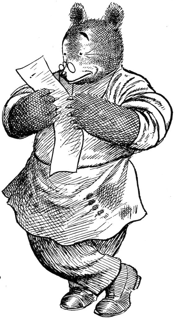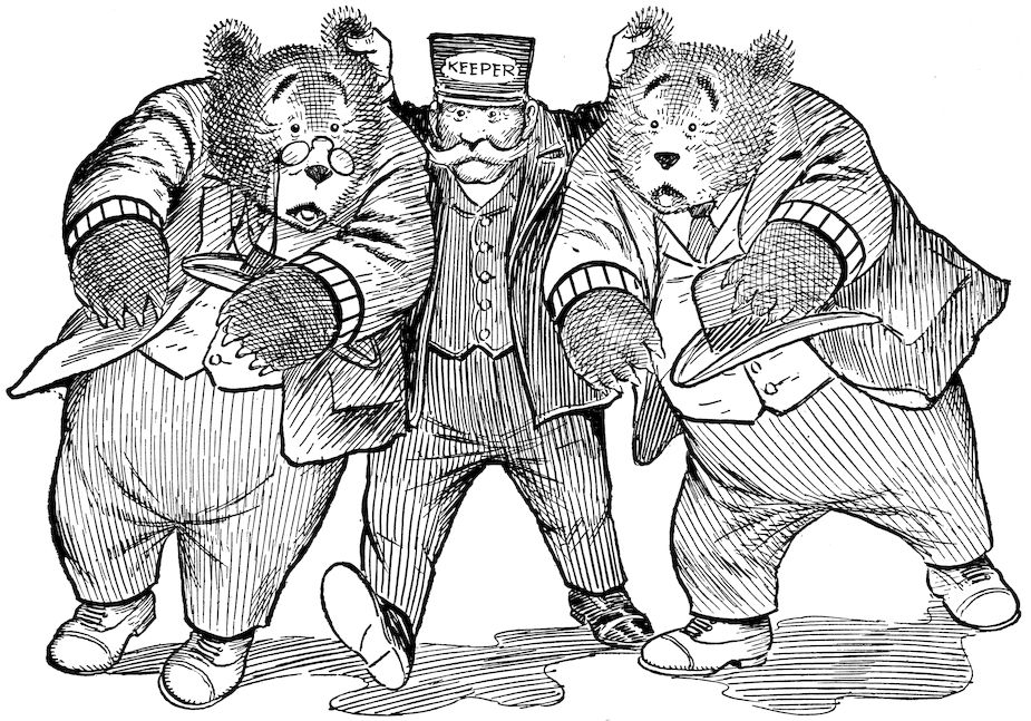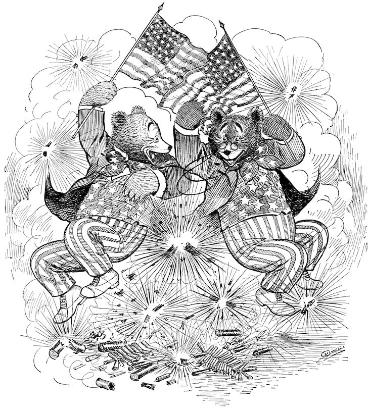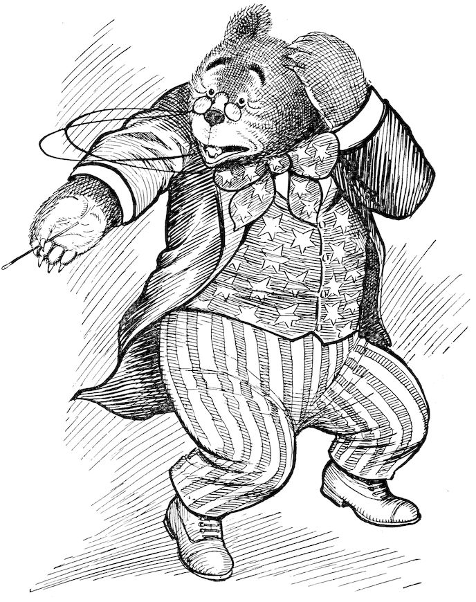 When in the autumn of 1905, I created the characters of TEDDY-B and TEDDY-G I builded better than I knew. I brought these bears out of their mountain den in Colorado and started them on their tour of the East to teach children that animals, even bears, may have some measure of human feeling; that the primary purpose of animals is not necessarily that of supplying sport for the hunter. That this lesson has been abundantly taught is proven by the overwhelming welcome given the Teddy Bears by the boys and girls of the United States; and it is safe to say that the traditional “bear will get you” has now and forever lost its frightening significance.