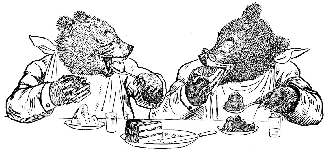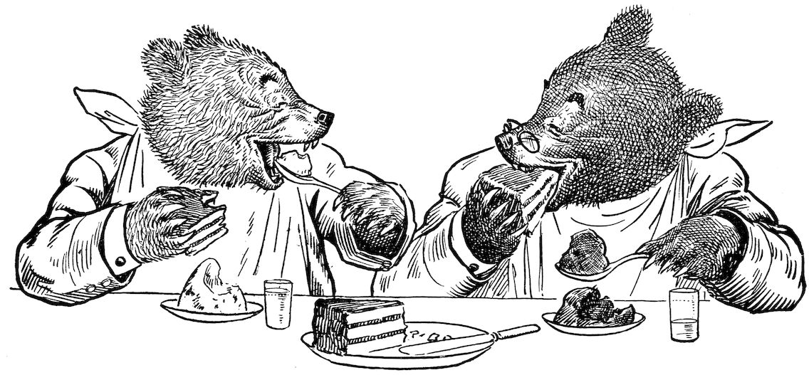 “There they stayed enjoying a rest, and eating things the very best.”