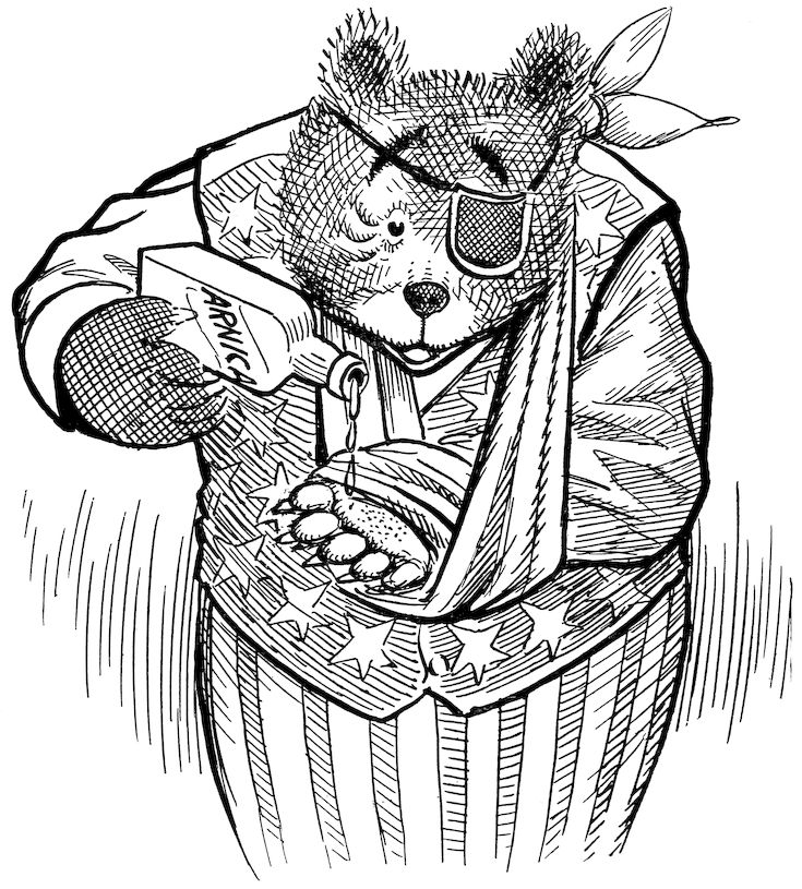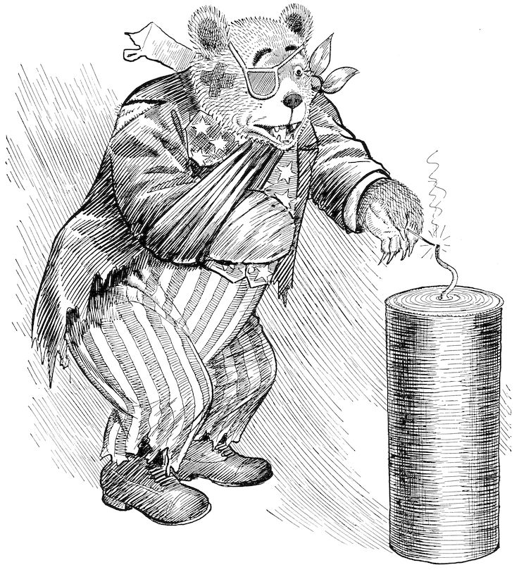 “The Teddy Bears on Broncho backs piled front and back with loaded sacks.”