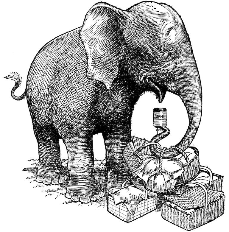 “The monkeys had gone in a solid bunch and captured the whole of the picnic lunch.”