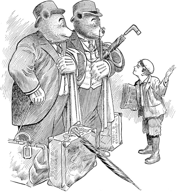 This book is a sequel to “The Travels and Adventures of the Roosevelt Bears,” and completes the story of the tour of TEDDY-B and TEDDY-G from Colorado to Washington. The third volume will report in jingle and picture the tour of the Teddy Bears abroad.