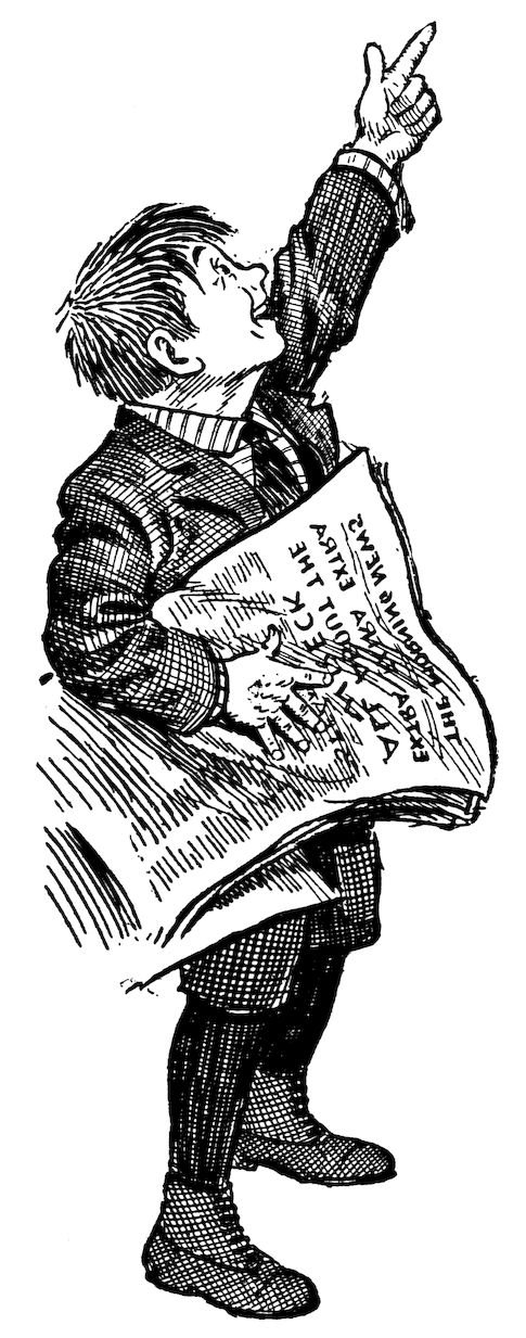 “They met a newsboy on the street who said the newsboys were to meet that night at six in a nook of theirs.”