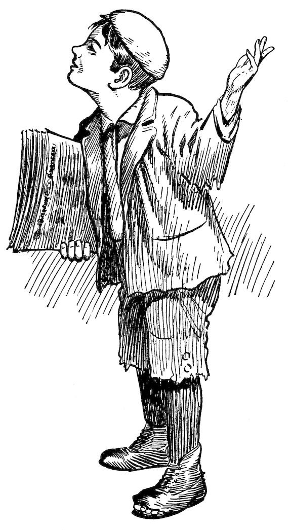 “The children laughed, he looked so queer, with the newsboy’s cap hung on his ear.”