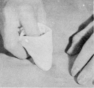 First rule for success in removing a stain is to start while it is fresh, even before it dries if possible. Hot soapsuds or the heat of an iron sets some stains too, so that it takes strong treatment to loosen them. The professional cleaner always “spots-out” stains before he gives a garment a general cleaning or pressing.