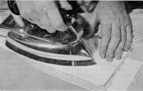 Some silks, rayons, and wools are spotted by water. To remove such spots, dampen the entire material evenly, either by sponging with clean water or by shaking in the steam from a briskly boiling teakettle. Then press it while still damp. Scratching with the fingernail or a stiff brush or rubbing the cloth between the hands will sometimes remove the spot.