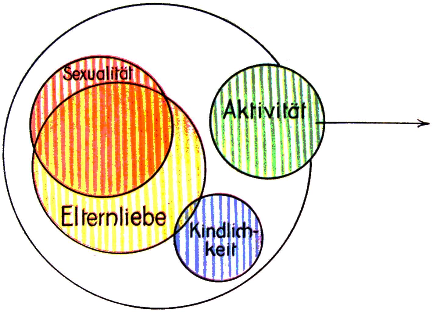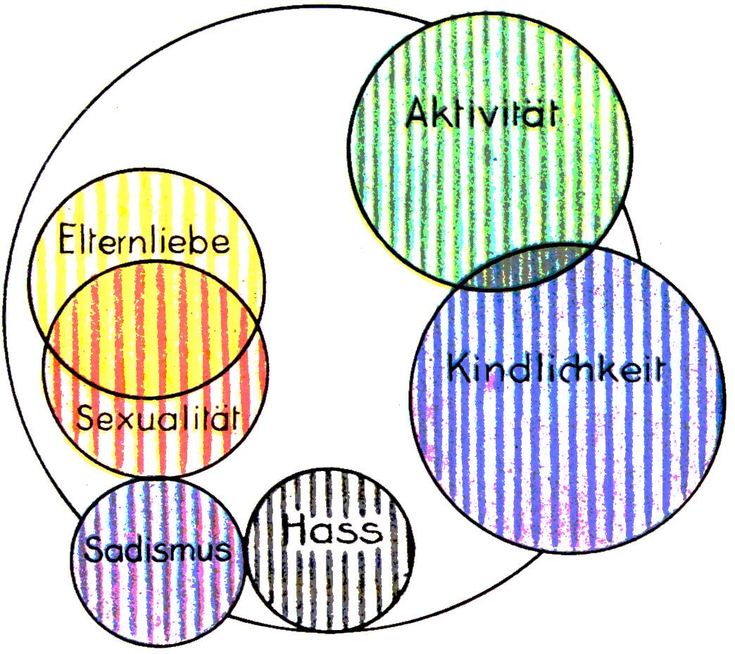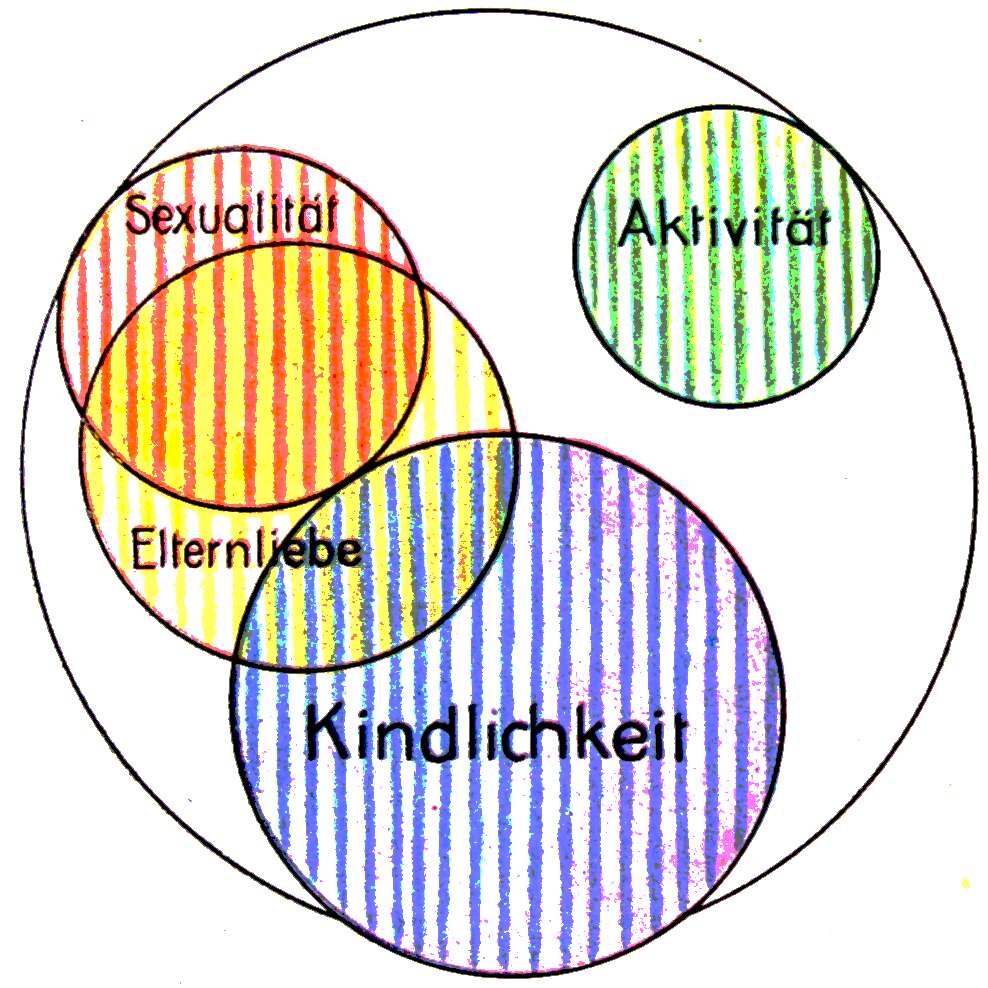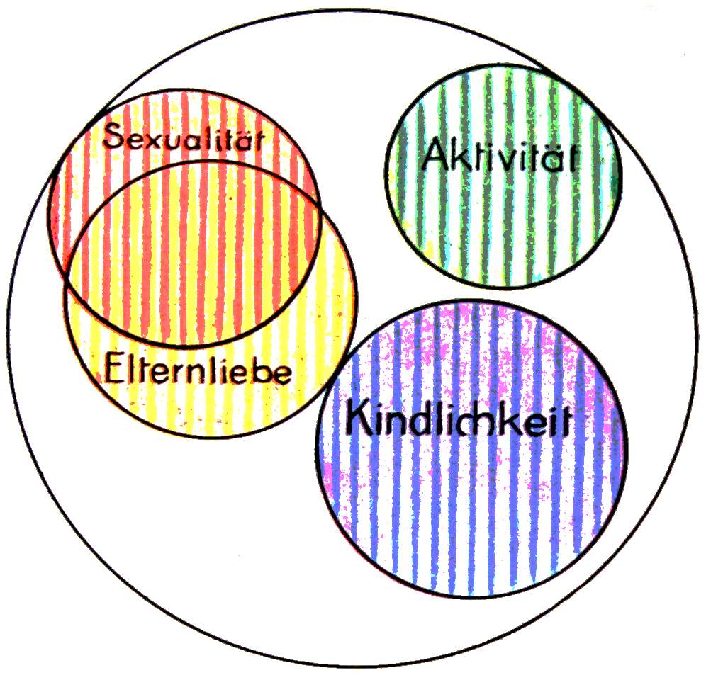 | 1. | Sexualität, fast völlig gebunden oder eingelagert in die Anhänglichkeit an die Eltern und die Familie. |
