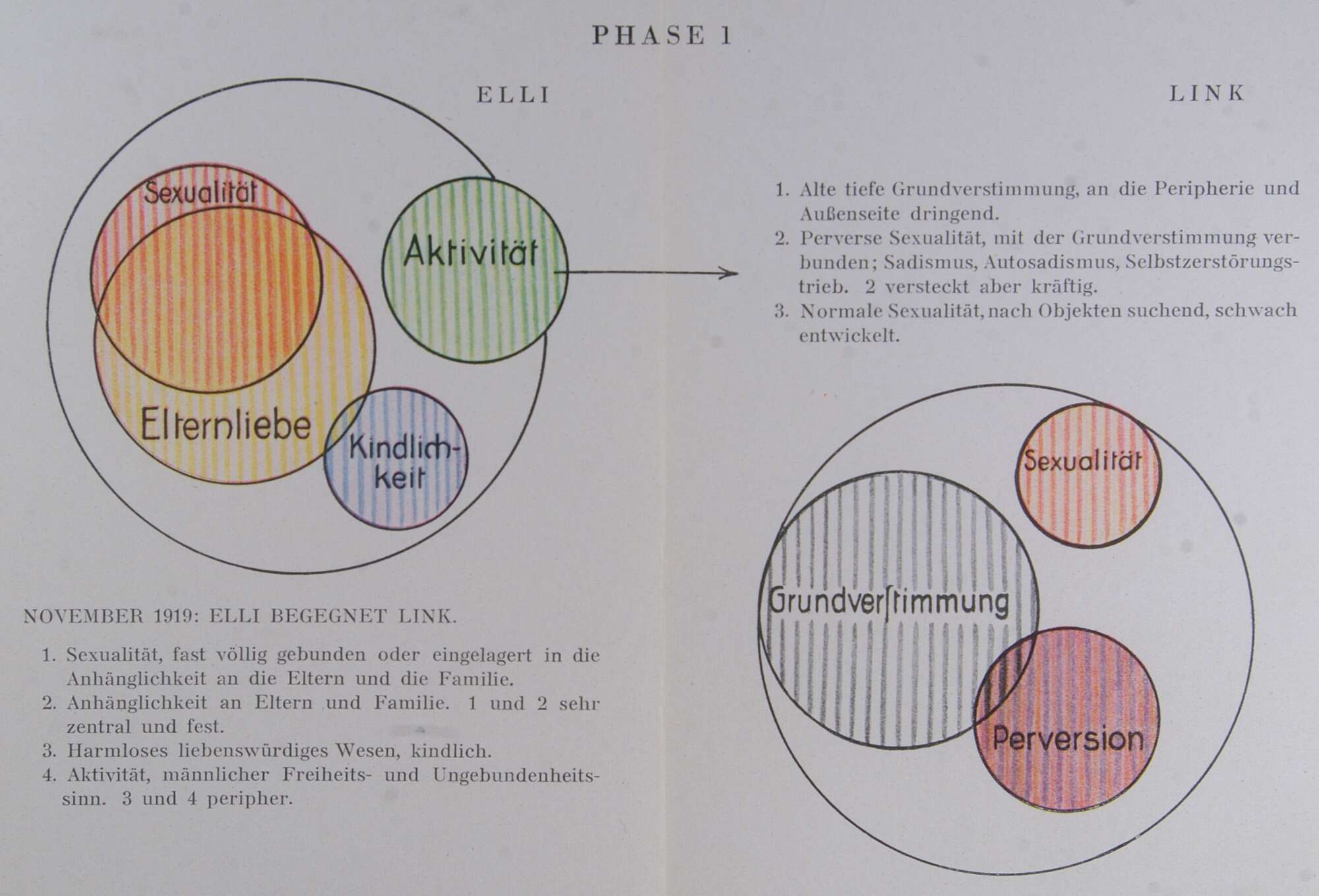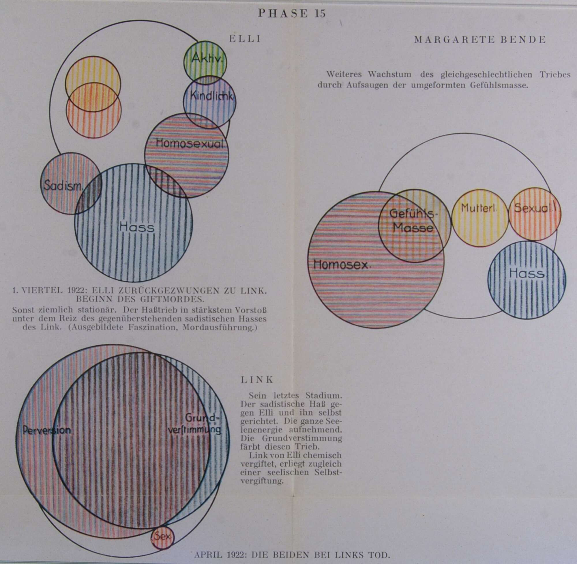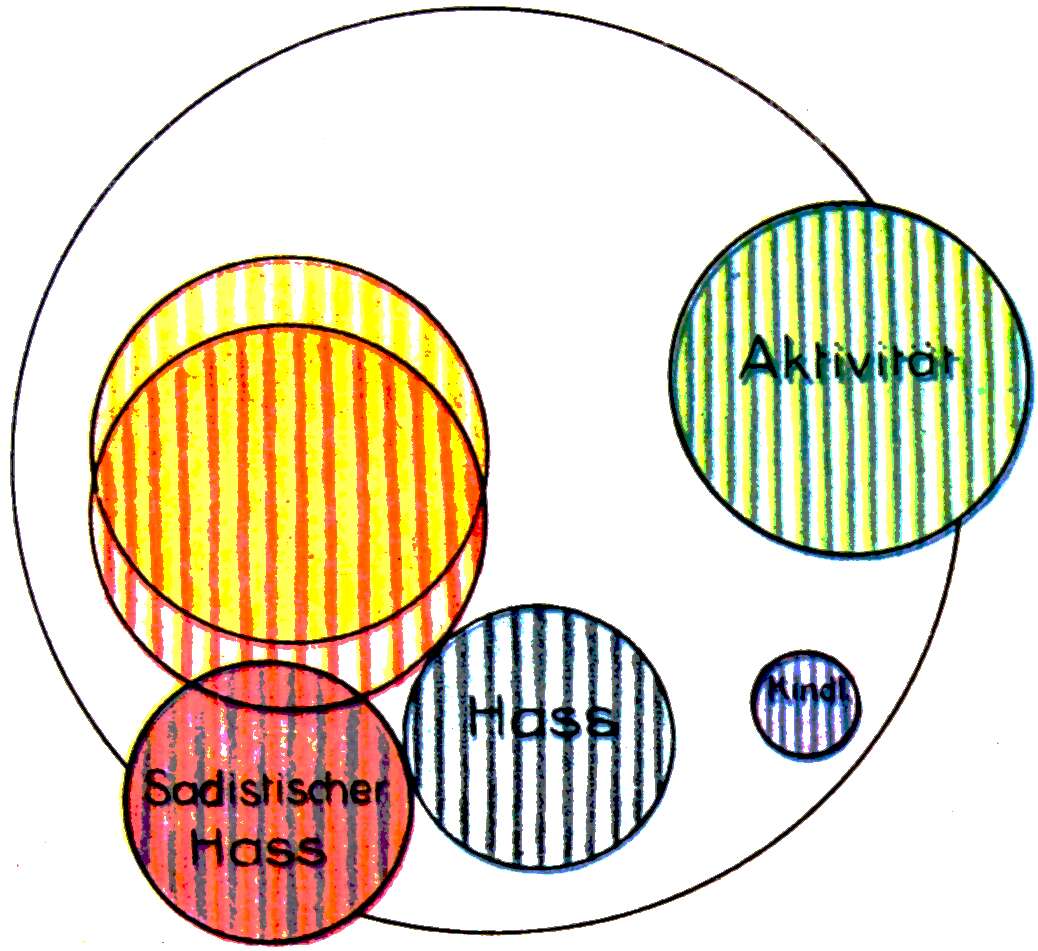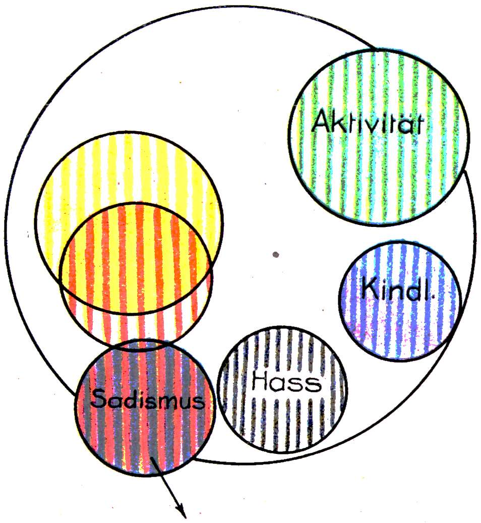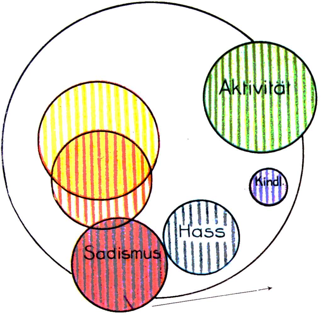 Sein letztes Stadium. Der sadistische Haß gegen Elli und ihn selbst gerichtet. Die ganze Seelenenergie aufnehmend. Die Grundverstimmung färbt diesen Trieb.