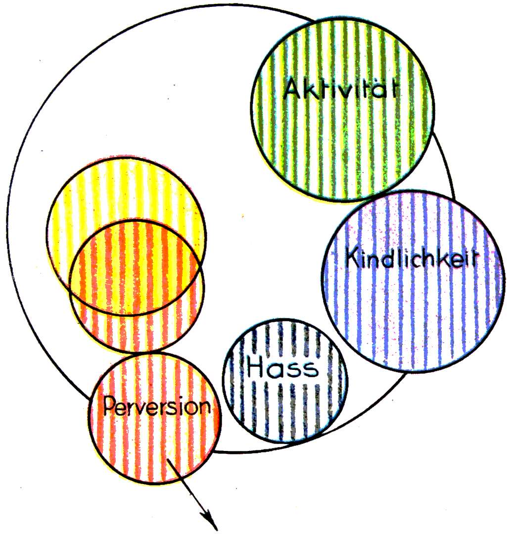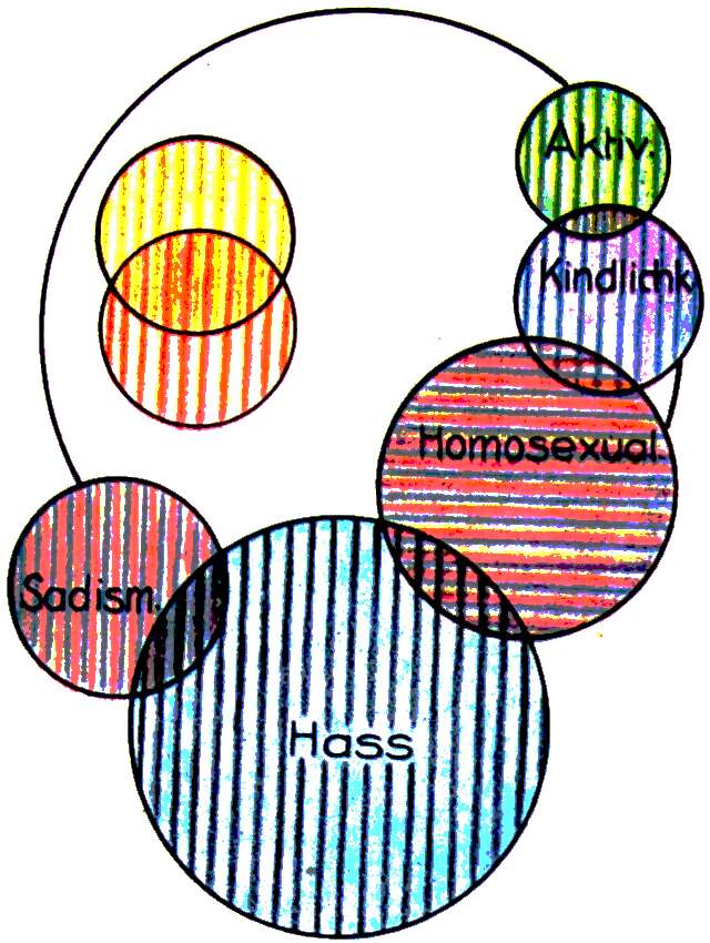 | 2. | Die perversen sadistisch autosadistischen Antriebe mit Ellis in Verschränkung und in der Tendenz auf Zunahme. |