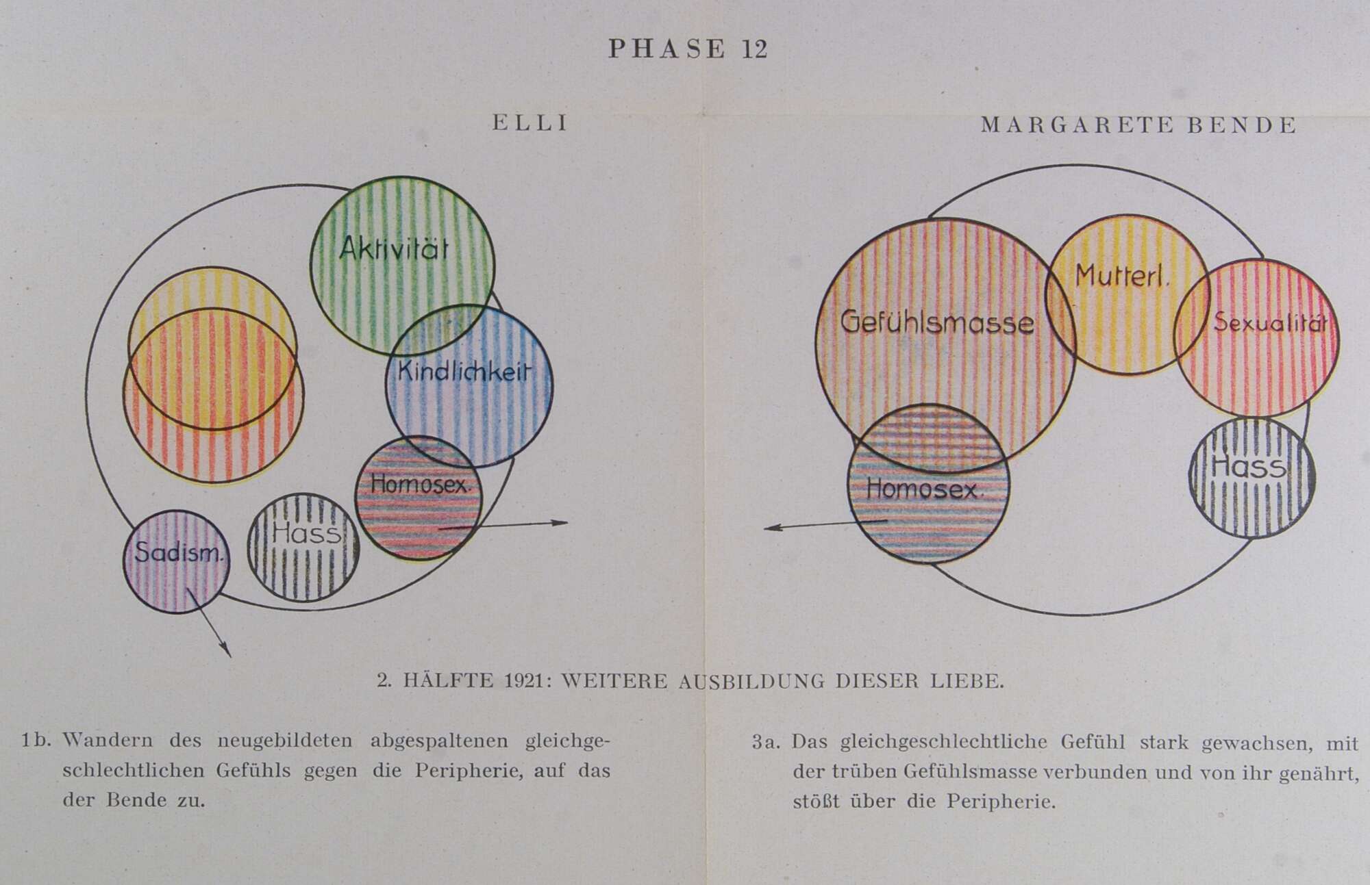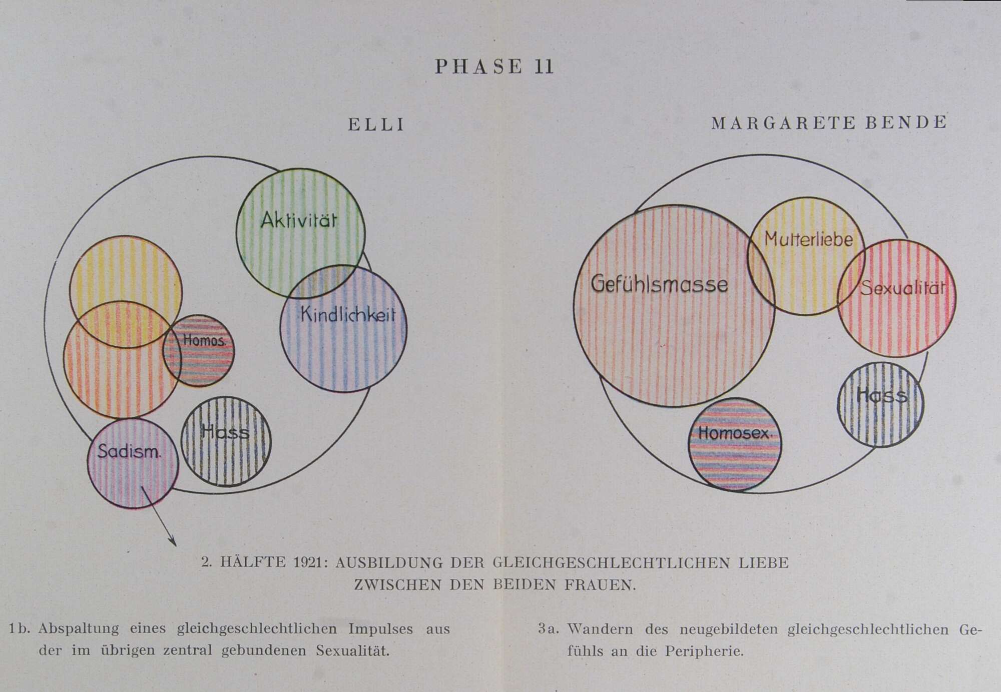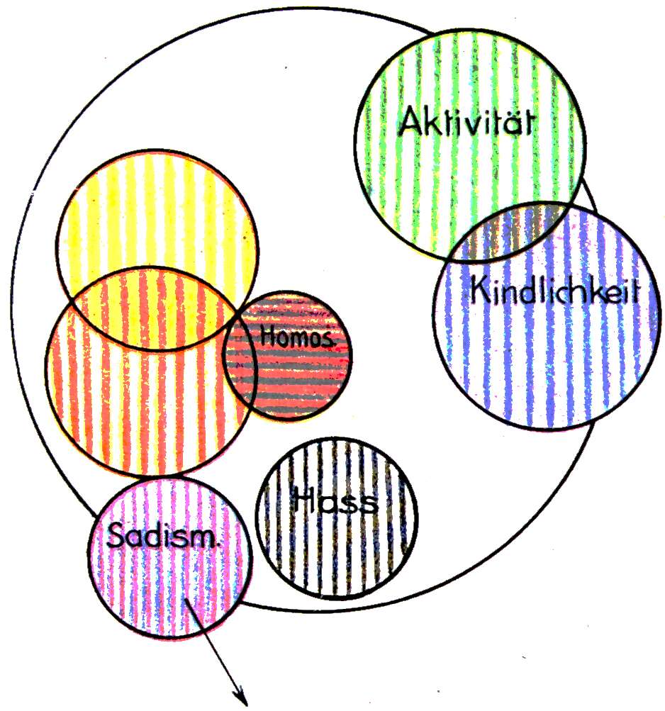 | 1b. | Wandern des neugebildeten abgespaltenen gleichgeschlechtlichen Gefühls gegen die Peripherie, auf das der Bende zu. |