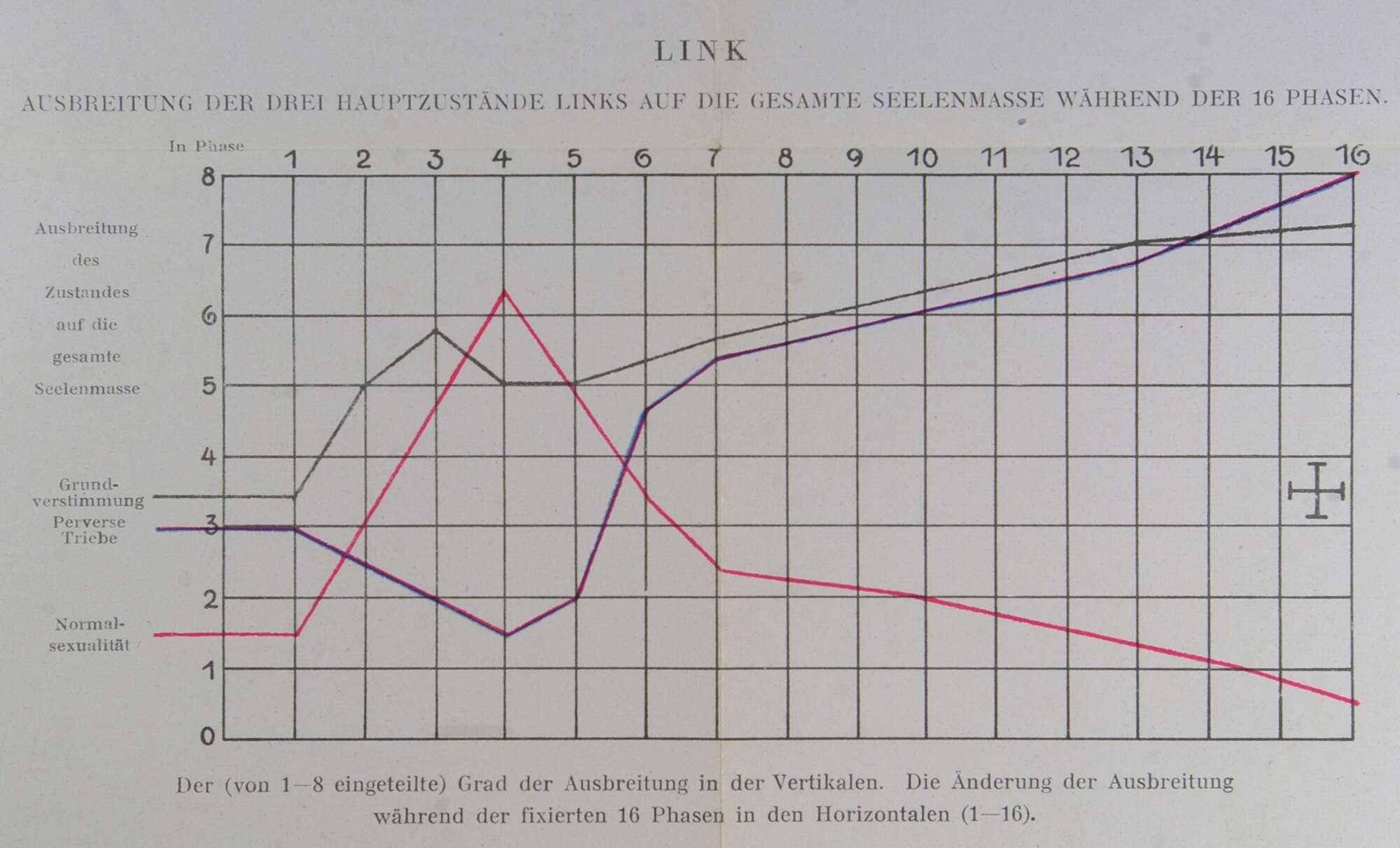 | 1a. | Ansteigende sadistische Sexualitätsgruppe tritt peripher hervor, sie steigert die gegenüberliegende entsprechende Links. | |