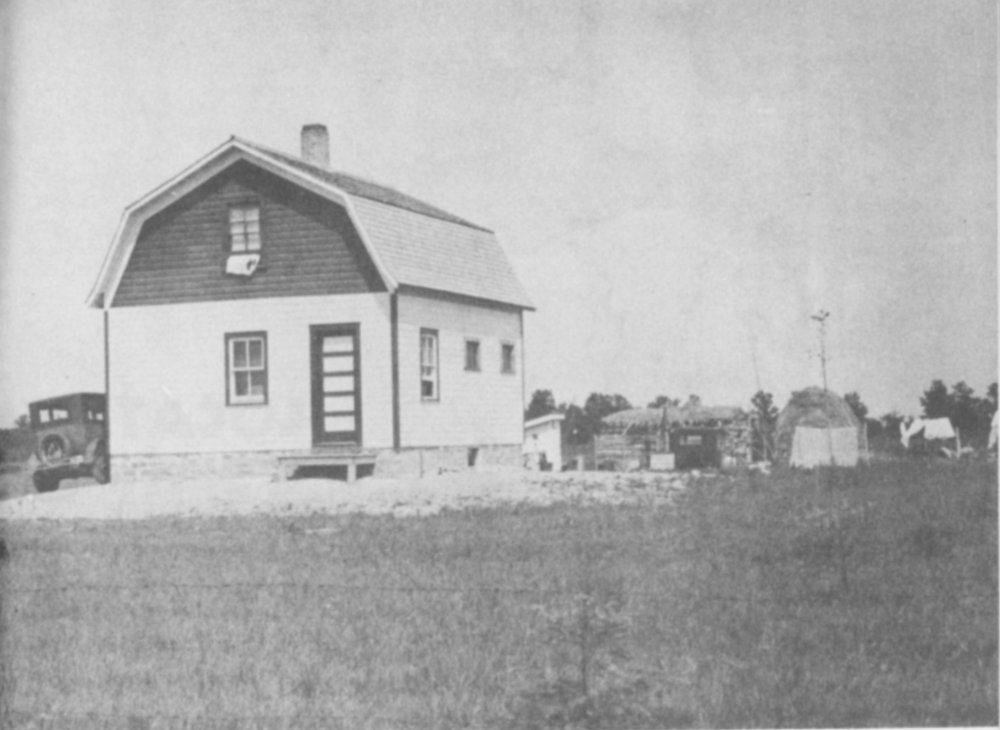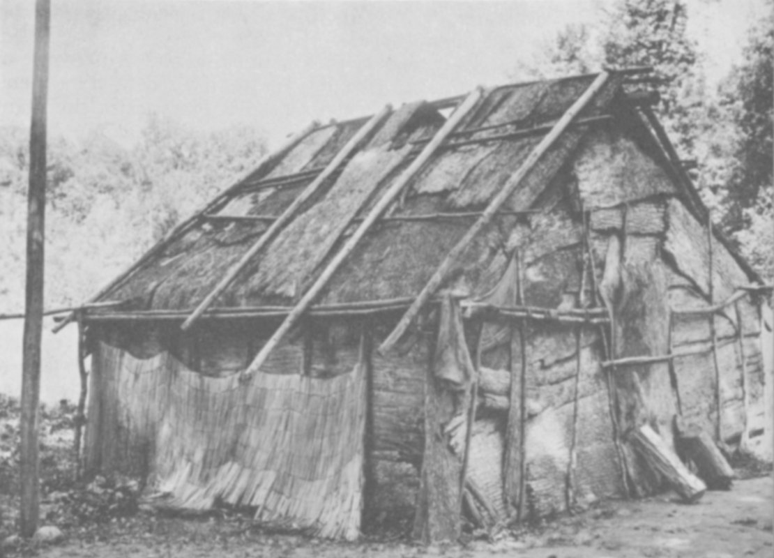 At the new summer camp we watch our friends build summer lodges. These are rectangular in shape with inverted-V-shaped roofs much like our own houses. The entire lodge is covered with strips of elm or other bark.