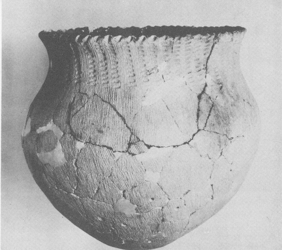 One day we are interested observers of pottery making. Grandma goes to a clay bed near the river and selects suitable materials including some coarse sand for tempering the pottery paste, which is made of both clay and sand. The paste is worked into long cylinders which are finally coiled about into the desired shape. After the vessel has assumed final shape it is paddled with a cord-wrapped tool and allowed to air-dry for several days, and finally baked in a large outdoor fire. The finished pot can be used to boil water or cook food, and has the advantage of being easily replaced in case of breakage.