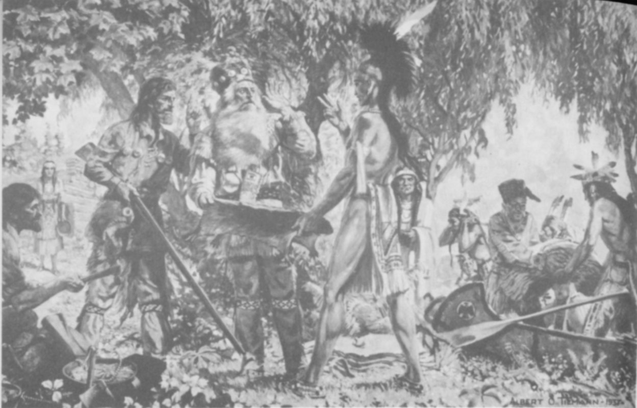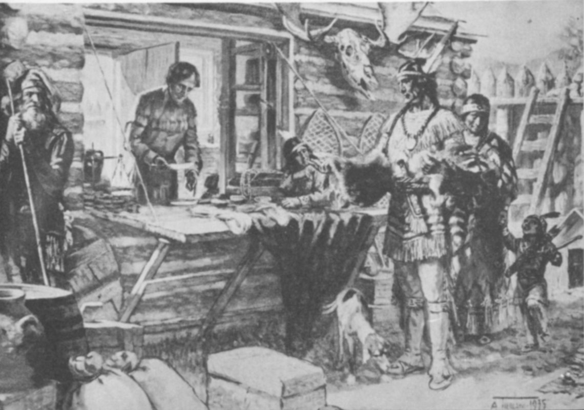 THE FUR TRADERS (MUSEUM MURAL BY A. O. TIEMANN).