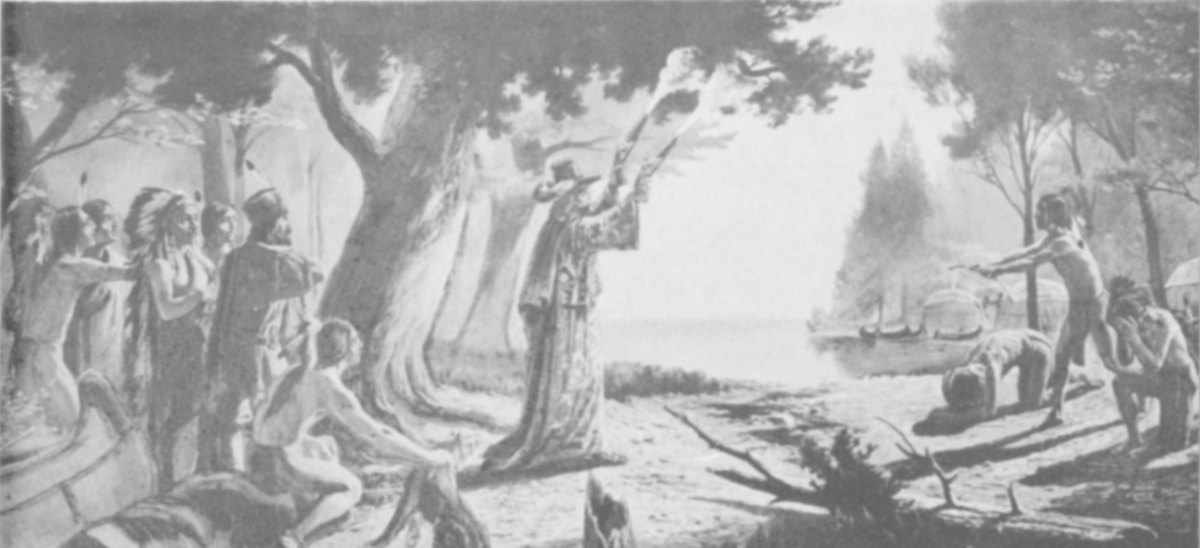 Few of us realize that the early history of Wisconsin is as romantic as any our eastern seaboard states can boast. The area that is now the State of Wisconsin became the gateway into the Middlewest and the meeting place for the French and the Indian tribes of what was then regarded as the West. This early period of French control was an era in which Jesuit missionaries carried the doctrine of Christianity from village to village, often visiting tribes that had never before seen white men. It was a time when the French traders, lured by the love of adventure and romance as well as the wealth to be obtained in the fur trade, pushed through the forests and followed strange rivers until they reached the villages of unknown Wisconsin Indians. It was in these villages that such traders, including the “noblest” youth of New France, lived with the Indians, sat in their councils, took part in their war dances, accompanied their war parties to battle, and often married their women.