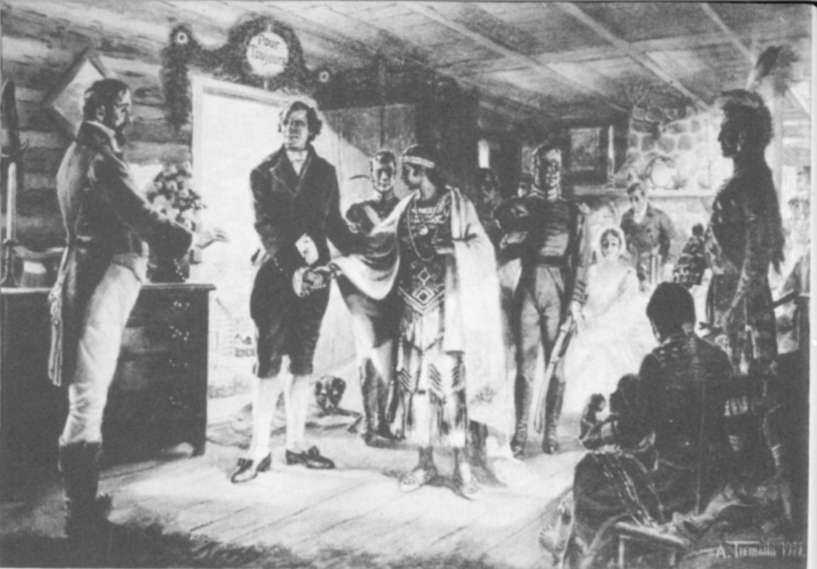 British control of Wisconsin’s Indians did not cease with the end of the Revolutionary War. Despite the British agreement in the Treaty of Paris, in 1783, to turn over their posts at Niagara, Detroit, and Michillimackinac, they continued to hold these forts until after the Jay Treaty of 1794. It was not until October, 1796, that Mackinac, the last post to be turned over by the British, was officially occupied by American troops. The British, however, still maintained their control over Wisconsin’s Indians through the fur trade now operating from posts just across the Canadian border.