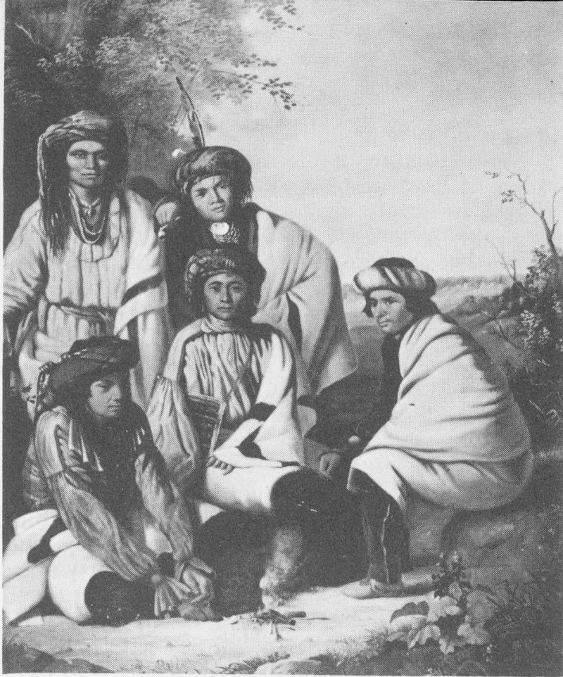 INDIAN YOUTH AT “SCHOOL” (PAINTING BY A. O. TIEMANN).