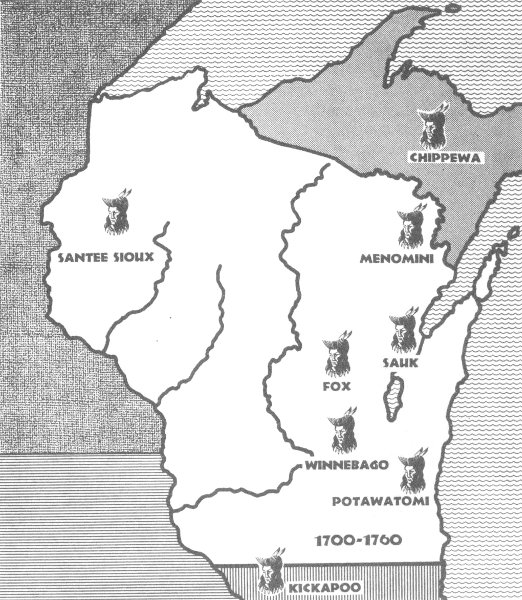 It was in this early French Regime that Wisconsin’s Indian tribes underwent great changes in their manner of life due to contacts with the white man’s civilization, It was a time of warfare and a struggle for supremacy in North America between the British and the French, and 12 their Indian allies, with Wisconsin’s tribes espoused to the cause of the French. It was the heyday of the fur trade with literally millions of beaver and other skins being taken from Wisconsin to enrich the trader and obtain white man’s goods for the Indians.