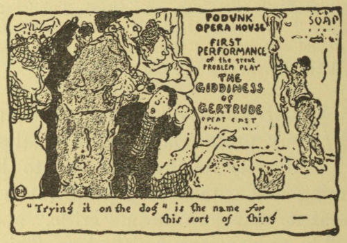 There’s always something in a jest—for the man who hears it. How about the jester? Well, he is easily satisfied. Most men want the earth, so they get the bad as well as the good, but the best that the world affords is good enough for the jester, so I shan’t try to break the record. It is[26] often said that the jester swims near the top. Why shouldn’t he? Isn’t that where the cream is? And isn’t he generous enough to leave the skimmed milk for the chaps dismal enough to prefer to swim at the bottom?