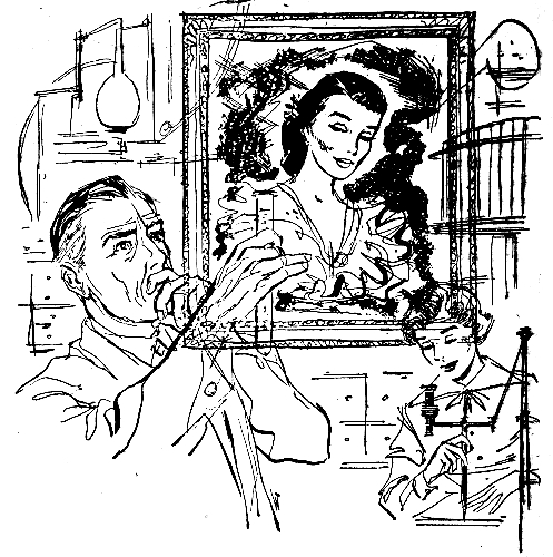 "Luke, you mustn't think that science came into existence this generation," he said. "There were men ahead of us who were just as interested in solving Nature's secrets as we are. Some of them came close to doing it. I think the man who painted this girl was one of them. I think he hid his knowledge in this painting, hid it because he did not dare reveal it. It is my hope that if I can discover his secret and perhaps add it to the knowledge of modern science, I can come up with something that may be as startling as the atom bomb, only in a different way." He frowned and a far-away look crept into his eyes. I knew he was dreaming of the future as he saw it, a better, healthier, happier world. He was just the man to make that dream come true!