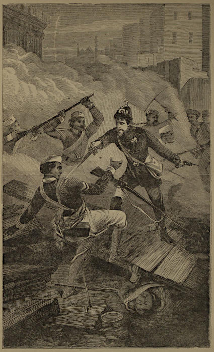 for badly then will it fare with Old England. When our soldiers come to value their crosses at threepence each, the price they will fetch at a marine store, we shall not long survive as a nation. But there is little danger of such an eventuality. There are things—God be thanked—which we do love and value more than life itself—things which gold can not purchase. The Victoria Cross is one of them; and we are about to relate how three gallant officers of one of our most distinguished regiments came to be decorated with the priceless meed “For Valour.” One was a commissioned officer; the other two were sergeants. Though different in rank, they were equal in bravery; their bravery was equally rewarded. Most people—thanks to Mr. Kinglake’s history, and other sources of information—are now tolerably familiar with all the details of the Battle of the Alma. They know how the gallant Welsh Fusiliers, after forcing their way to the heights, and seizing the colours on the Russian battery, were so cut up by the enemy that they were forced to retire. They fell back in obedience to orders. It so happened, however, that as the word, “Fusiliers, retire!” was given, the Scots Fusilier Guards were charging up the heights, and the officer in command of them, hearing the order, thought that it was intended for his own men, and commanded them to fall back. This fact is not mentioned by Mr. Kinglake, but there are many witnesses still alive who heard this second order given, and acted upon it. Now, it is very difficult to retire before an enemy without falling into confusion; and it so happened that the Welsh Fusiliers came rushing down like a torrent. One gallant regiment opened their ranks, allowed them to pass through, and then closed again; but the Scots Fusiliers were not so fortunate. They did not open their ranks, because they received no order to do so, and were already falling back, when the crowd of Welsh Fusiliers came rushing upon them, broke through their ranks, and threw them into disorder; and, in the midst of this, the Russians made a dash at the colours of the regiment.