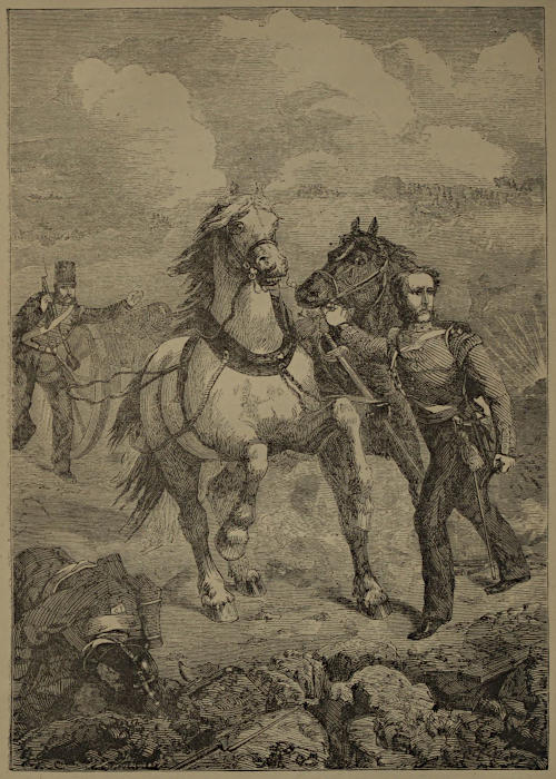We have read in books that soldiers sometimes weep while fighting hand to hand and sorely pressed—not tears of cowardly terror by any means, but such tears as the strongest of men will shed in hours of fierce excitement. Wellington wept as he embraced Blucher after the Battle of Waterloo. This, indeed, has been denied, but it is not difficult to believe it true. There are moments in the lives of all men, even the most reserved and self-contained, when the hidden fountains of feeling well over and find an outlet through the eyes, and we should not think a whit less highly of our soldiers did they shed a few tears of valiant rage while victory was still doubtful. But these tears, we suspect, are purely imaginary. For ourselves, we never met with a single soldier who confessed that he had shed tears himself, or seen others weep. We are sure that they would not have denied it if they had yielded to any such weakness, for, as a class, soldiers are the most truthful of men. All with whom we conversed agreed in affirming that our men were very quiet while fighting hand to hand with the enemy. There would be occasionally a shrill cry of pain from the wounded, or a short cry of triumph from the man who struck down his opponent,[4] but generally, all the dread work of the battle-field was done in silence. All admitted that the most fearful sound during a battle was the cry of a wounded horse; it was so like that of a human being in his death agony—shrill, piercing, heartrending. The horses seem to become almost human in the hour of battle, to share in all the wild passions of the combatants, and to exult equally in the hour of victory.