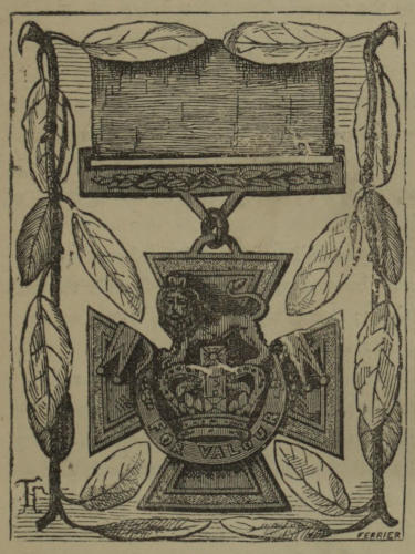 Not all our readers, perhaps, have seen the Victoria Cross. It is not very beautiful nor very valuable in itself. A fac-simile of it appears at the commencement of this chapter. It is a simple piece of bronze, shaped like a cross, and its intrinsic value may be about threepence. Its intrinsic value! but who can tell the price a soldier puts upon it? He had rather have that piece of bronze on his breast than be made a Knight of the Garter, and have his banner hung up with those of the other K.G.’s in the Chapel of St. George at Windsor. To obtain that small piece of bronze of the value of threepence he will lead the forlorn hope, be the first to storm the breach, and ever ready to expose his life to any danger. The Victoria Cross is as much to a soldier as the gage d’amour the knight-errant in the days of chivalry received from his lady-love, and swore never to part with. The pledge of her affection might be a soiled and tattered glove, worth even less than the cross “For Valour,” but it was dearer to her lover than life itself. O that the day may never come in this country when we shall judge of things by the Hudibrastic principle—