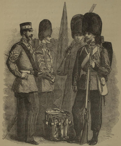 To this rule Victoria, by the Grace of God, Queen of the United Kingdom of Great Britain and Ireland, and Empress of Hindostan, is no exception, and could our eyes be gratified with a review in which the “household troops” of all nations took part, from the Cent Gardes of Napoleon III. to the Amazons of His Brutality of Dahomey, it would be seen that there are none superior to the British Guards.