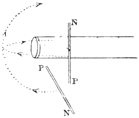 50 The accompanying diagram (Fig. 20) was not given by Faraday. It was pencilled by the author more than twenty years ago in the margin of his copy of Faraday’s “Experimental Researches,” vol. iii., p. 450, opposite this passage.