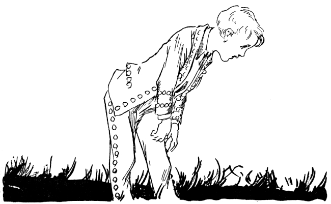 There were some who thought the castle, built as it was of dark purple button wood, studded with rows and rows of bright buttons, extremely odd, but it suited Kinda Jolly and Rosa Merry right down to the cellar and the five hundred inhabitants of Kimbaloo thought it extremely magnificent. No doubt they were right. However that may be, anyone who had seen Kinda Jolly and Rosa Merry walking in the gardens on pleasant summer evenings would have had to admit they were the most lovable little couple in the land. Kinda was short and fat and Rosa was short and merry. They both dressed in the purple costumes of the Gillikens, but their robes were trimmed all over with buttons that chinked delightfully when they walked and almost dazzled one by the brilliance of their colors.