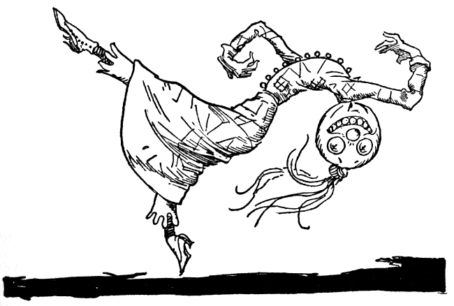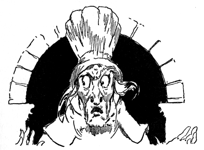 But after you have been a witch all of your life, it is dreadfully hard to settle down to being just an ugly old woman. Mombi had stood it as long as she could, and then one day she had closed up her little hut at the foot of the Gilliken mountains, taken her crooked stick, and set out to seek a position as cook in one of the castles of Oz—for she felt that only among a great many kettles and cauldrons could she ever be contented or at home. Besides being cross and crooked, Mombi was so ugly and ill-tempered that most of the castle doors were slammed in her face, but one day she had come to Kimbaloo. Hobbling through the button wood she found King Kinda Jolly under a shoe button tree. Falling upon her knees Mombi begged him so hard to let her remain as cook that the gentle old monarch finally consented, though much against the advice of Hah Hoh, the Town Laugher. But Kinda, thinking her a poor and needy old woman, had kept her nevertheless, and as Mombi, like many another old witch, was an excellent cook, he had never regretted his bargain. In spite of her wonderful cooking no one had ever grown really fond of her, but she was treated with consideration and respect and allowed to do pretty much as she pleased in the castle kitchen.