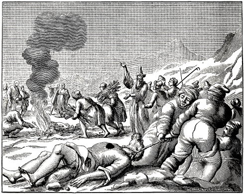 Then followed a great multitude of very pious and virtuous people—men, women, youths and maidens, all clothed with the same armor of faith and walking in the same path. Some of these were, like their leader, deprived of life; the rest were led to different places of execution, where they beheld many of their fellow brethren and sisters whose lives had been taken by the most dreadful means—burned and roasted at the stake. They nevertheless were not terrified, though they had to expect to be put to death in the same manner; but were of good cheer, calling upon God for help, that they might not falter in their sufferings, but prove steadfast to the end; this done, they also were burned.
