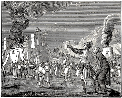 [Climb up your golden height, champion of the band of holy souls, who followed God’s red banner of blood, in oppression and in the midst of misery; where naught but the smoke and vapor of human burnt sacrifices ascended to the clouds; yet thou, hero, didst go before them, yea, didst fight thy way through the strait gate to the wide Heaven.]