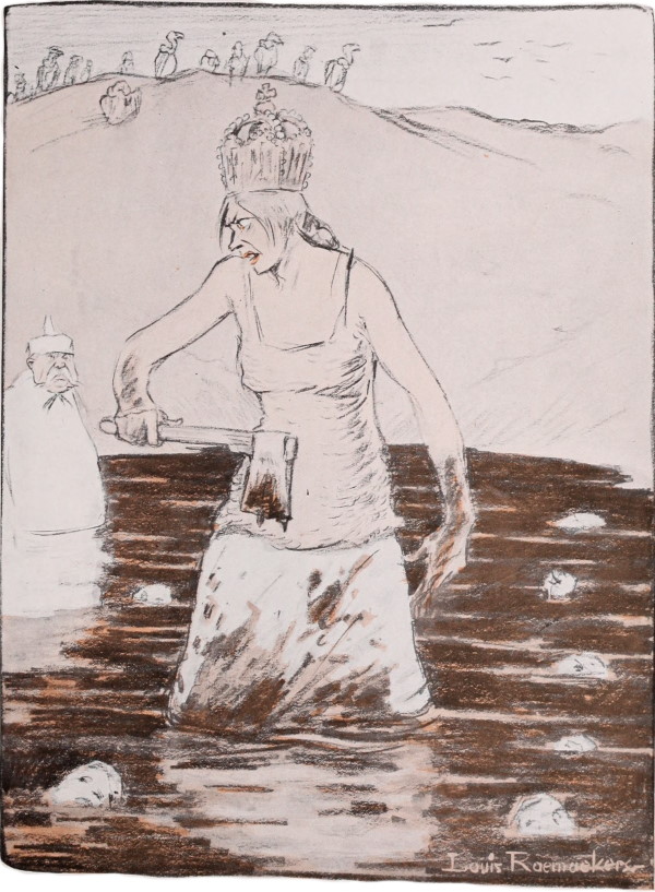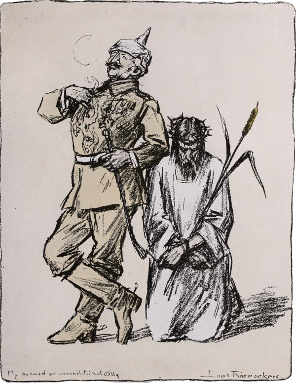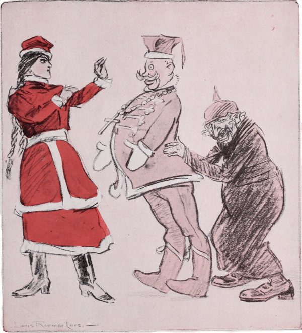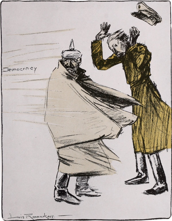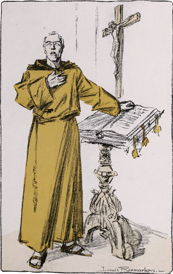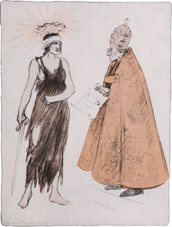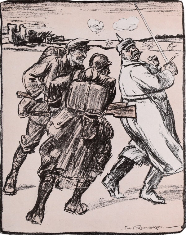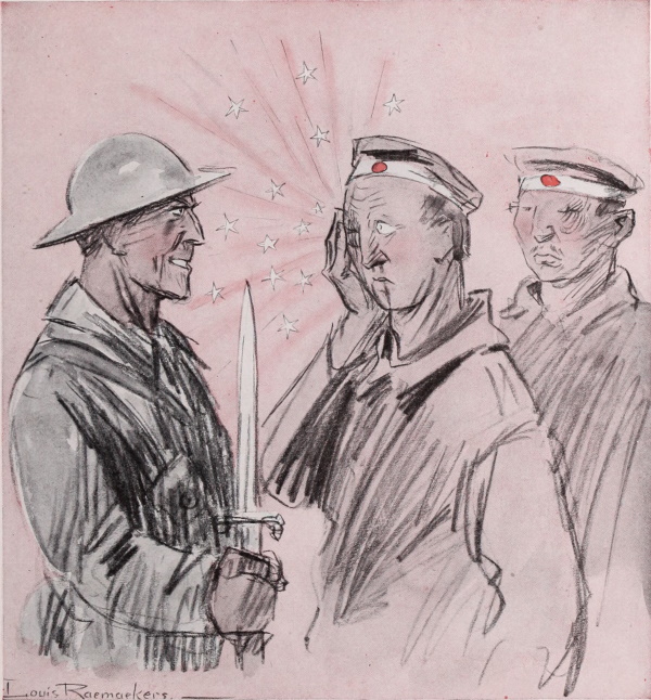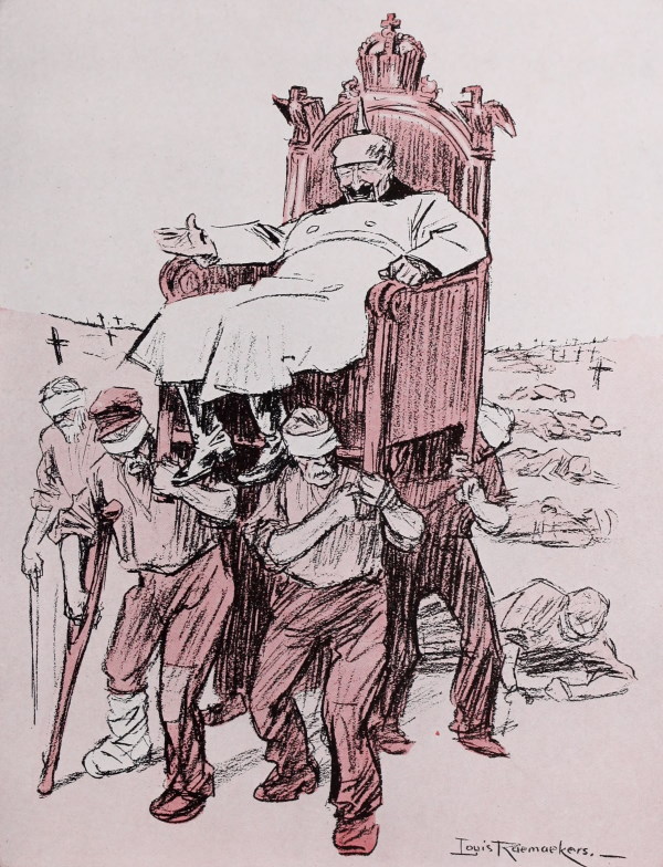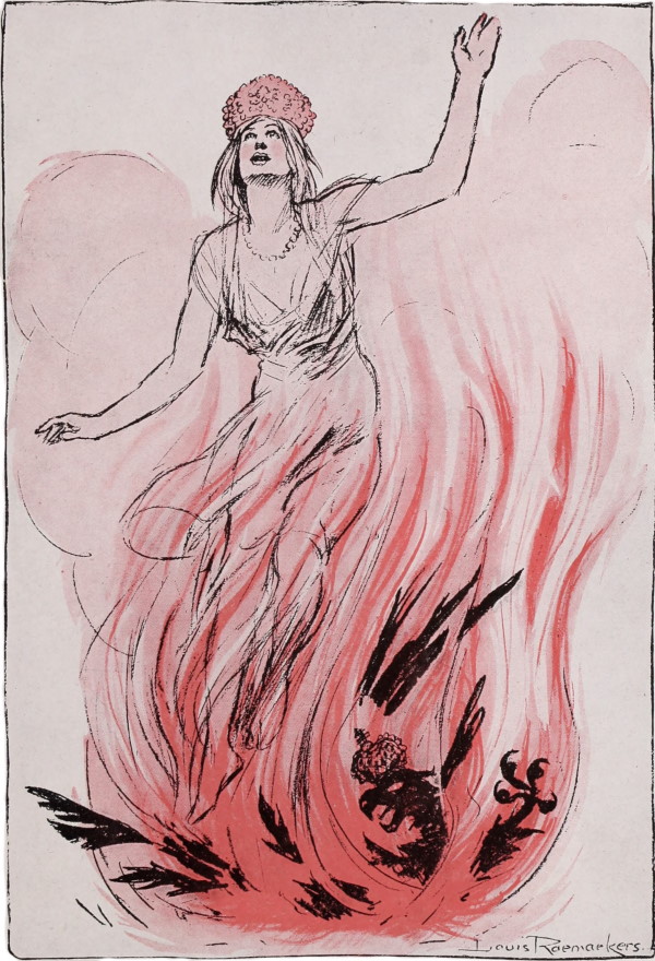 It is one of the great works of the world which he has done. Perhaps genius was only dormant, waiting for the cry of general catastrophe to bring it forth into vivid, terrific life. And yet—for who shall say that all things in heaven and earth are understood?—it may be that those same voices that called through the orchard of Domremy called to the cartoonist in the office of the Amsterdam “Telegraaf,” that into his simple soul, recommended to God by its love of flowers, there fell a tear from on high.