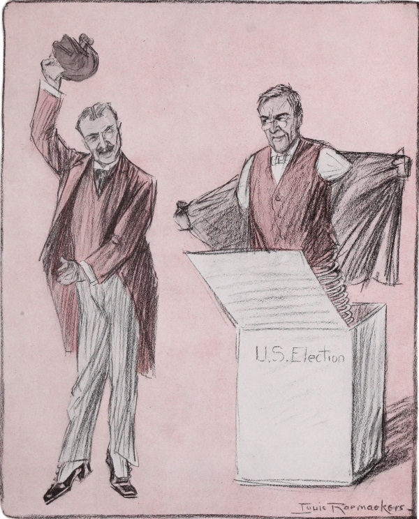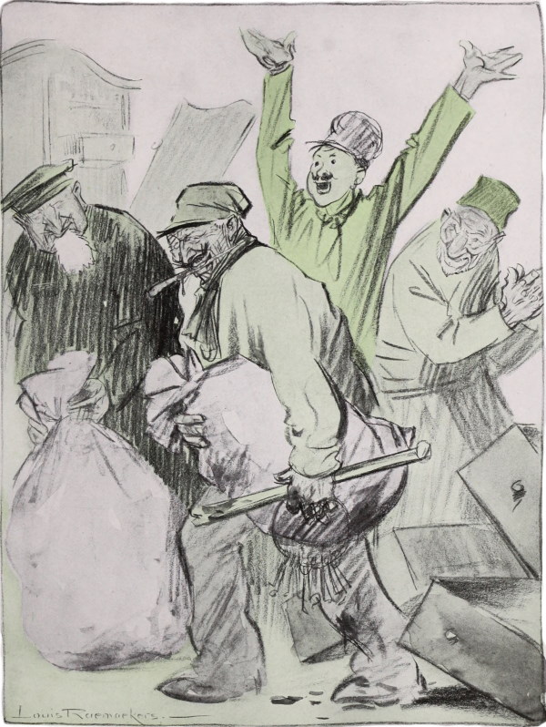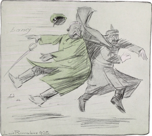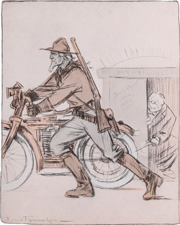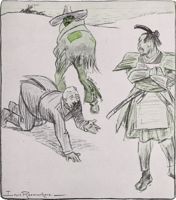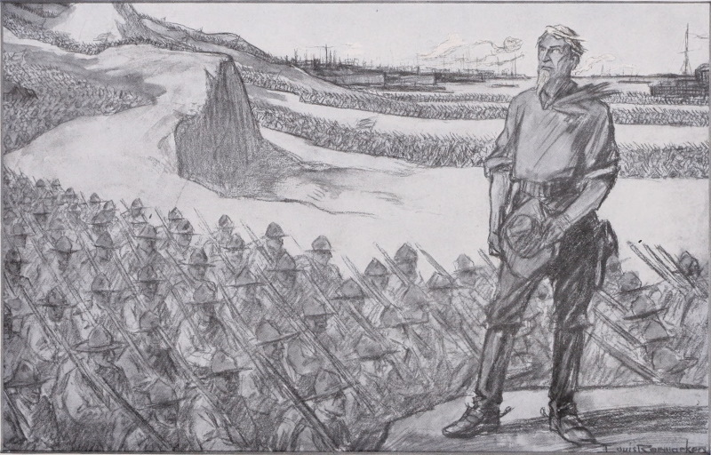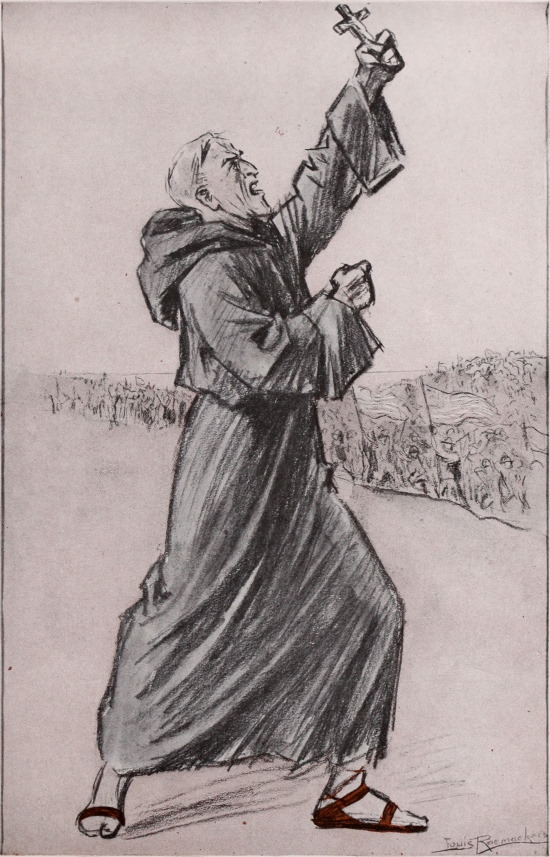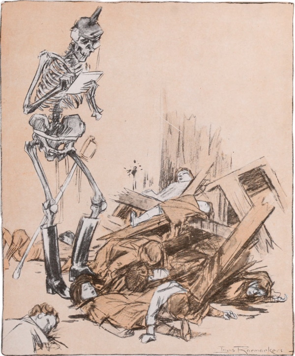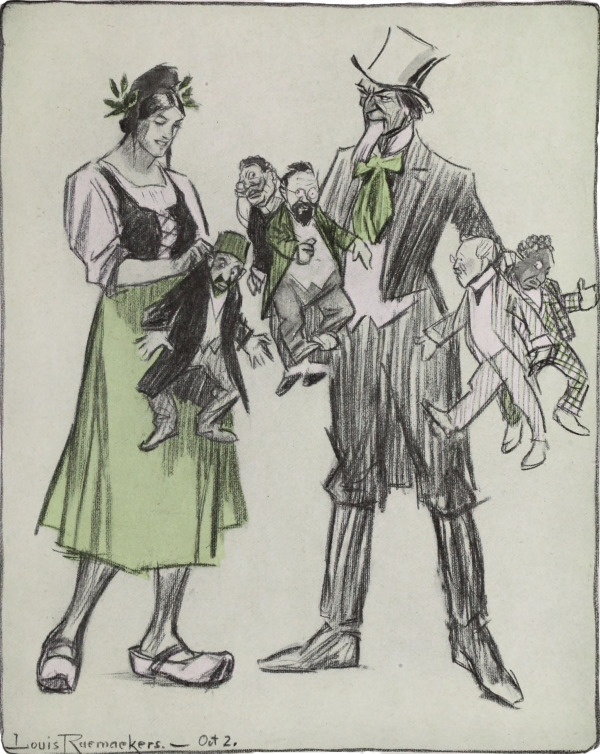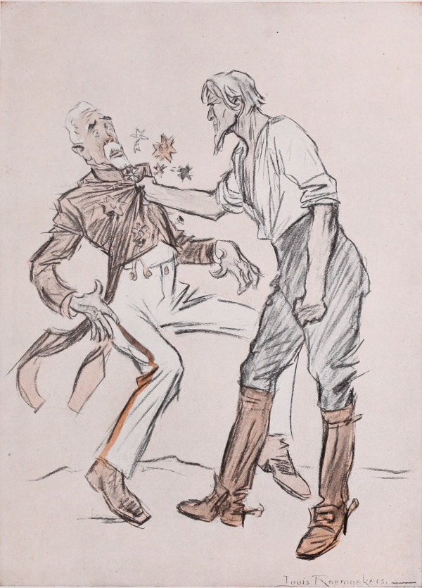 It is one of the great works of the world which he has done. Perhaps genius was only dormant, waiting for the cry of general catastrophe to bring it forth into vivid, terrific life. And yet—for who shall say that all things in heaven and earth are understood?—it may be that those same voices that called through the orchard of Domremy called to the cartoonist in the office of the Amsterdam “Telegraaf,” that into his simple soul, recommended to God by its love of flowers, there fell a tear from on high.
