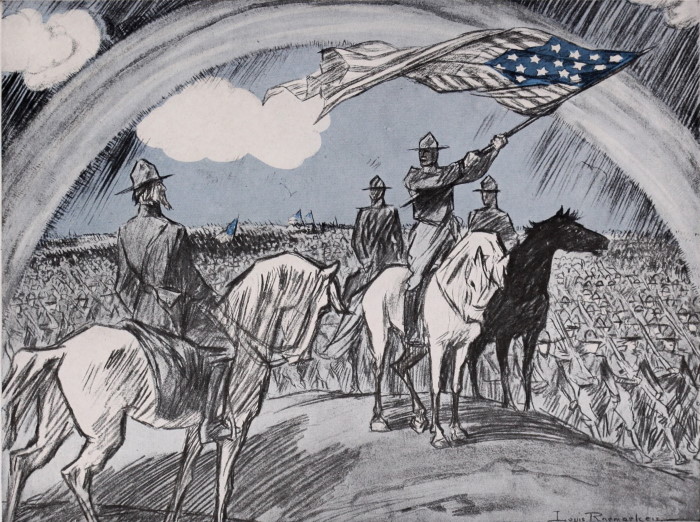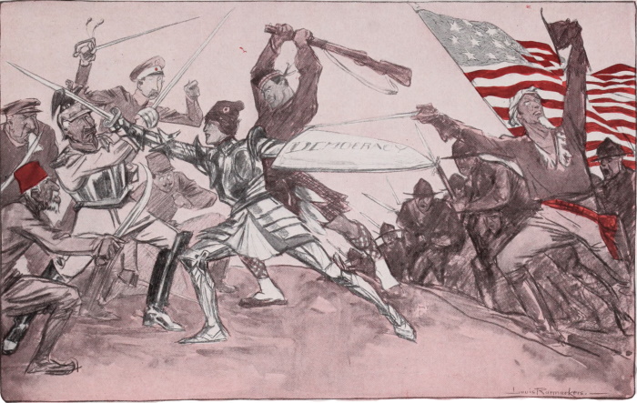 The Imperial German Staff thought not. It imagined that a people, whose daily sport was carping criticism of their public officials, whose army was hardly as large as a policeman’s squad, whose sentiments were all for peace and arbitration, whose ordnance was archaic and whose only gas-bombs were perfervid oratory could never right-about-face and set themselves to engage in the horrific warfare desolating the fields of Europe.