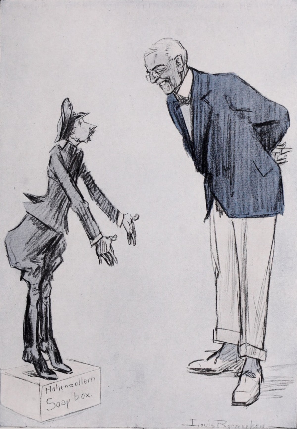 IT is Ambassador Gerard’s opinion that when the German government issued its final insult to the United States, all the Kaiser’s advisers were convinced that no provocation would make the American people fight. President Wilson, they argued, had just been re-elected on a peace platform. They counted, it was evident, upon the influence of the millions of German-Americans to frustrate hostilities, and Herr Zimmermann of the Foreign Office openly threatened the revolt of 500,000 German reservists in America if the United States dared “to do anything against Germany.” The Western States were reported to be indifferent to the technicalities of the submarine dispute. The East was described as interested in the submarine sinkings only because they interfered with the traffic in munitions and the profits therefrom. The whole country was supposedly averse to war, unwilling to enter into European entanglements, and devoted solely to peaceful industry and money-grubbing.