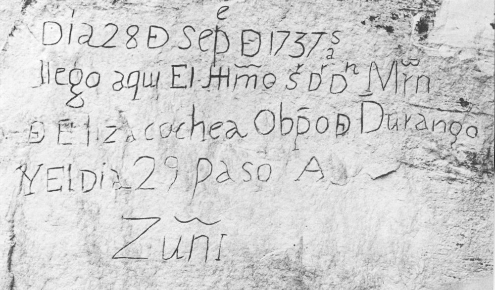 “The 28th day of September of 1737, arrived here the illustrious Señor Don Martin de Elizacochea, Bishop of Durango, and the day following, went on to Zuñi.”