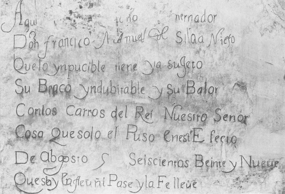 “We passed by here, the Sergeant Major and Captain Juan de Archuleta and Adjutant Diego Martin Barba and Ensign Agustin de Ynojos, the year of 1636.”