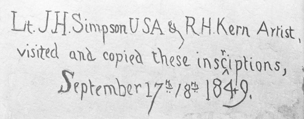 Lt. J. H. Simpson, an engineer for the army, and Mr. R. H. Kern, a Philadelphia artist who rode around with the army drawing pictures, were the first English-speaking people to make a record of Inscription Rock.