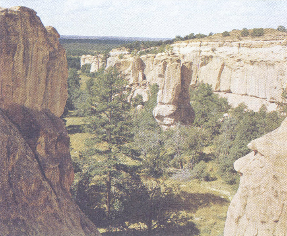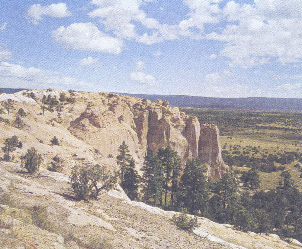 In the year 1540, Francisco Vasquez de Coronado came up from Mexico with some 350 Spanish soldiers and crossed southeastern Arizona to Zuñi, a pueblo 30 miles west of El Morro. Breaking up into several groups, they went eastward 70 miles to Acoma Pueblo and thence to the Rio Grande. At least one of the groups probably passed El Morro enroute.
