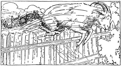 Billy turned and took one long look at the dog. Then without a word of warning he put down his head and bounded toward him, taking ten or twelve feet at a single bound.