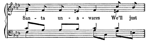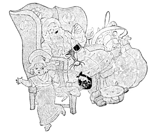 [Jack and Elves run off, Left. Shouts and a loud “Whoa!” are heard outside, and then Santa, enters, with a triumphant escort, and comes to front.]