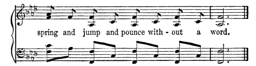 [The Fairy touches him with her wand. He begins to turn about, displays his curly tail, and spits at the little Maiden when she slyly pulls it. Little Maiden strokes his back, and he sings a meow solo to the tune of “Auld Lang Syne.” All applaud.] [Pg 7]