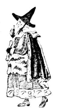 Jack Frost; “Pierrot” costume of white or pale blue, with silver cap and ornaments.