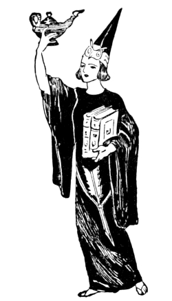 The Queen and her Fairies are in white, with silver tinsel and crystal ornaments, and carry wands with silver stars. They may wear either trailing draperies, or short “Pierrette” dresses, with silver ruffs, rosettes, and little pointed caps.