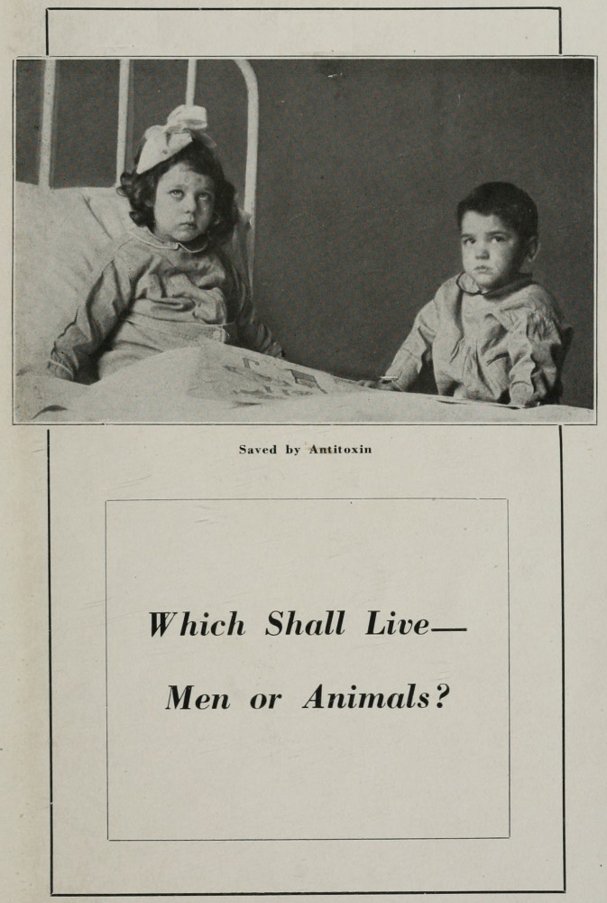 We have seen that all these great advances in medicine and surgery have been made as the result of experiments on living mammals, and you will agree, I believe, that in all probability further advances in these fields must be brought about by the same means. This is the opinion of practically all eminent physicians and surgeons and veterinarians, and of all the great scientists and educators in other fields—in short, it is the opinion of all persons who have vast responsibilities for the health of men and of animals. The only persons who are opposed to these reasonable experiments are the antivivisectionists, who have no such responsibilities. Would any sane person think of going to the antivivisectionists for help if there were an epidemic of smallpox or diphtheria, or if there were an outbreak of hog cholera or of blackleg in cattle? We don’t go to them because they know nothing about such matters. Yet they boldly contradict all competent authorities and tell us that experiments on animals are useless, that they have never accomplished anything. The antivivisection societies are composed largely of well disposed but woefully misinformed persons. And those who are responsible for the misinformation are the leaders of the antivivisectionists. I have been studying these leaders for some years, and I may say, without any danger of my statements being disproved, that among them may be found many of the most dangerous[14] of the criminal insane to be found in this country today—and I have recently visited some of our largest penitentiaries and asylums. I have found some of these leaders of the antivivisection movement to be guilty of falsehood, slander, libel, perjury, forgery, and attempted bribery. Under false pretenses they obtain money from weakminded and unthinking people and, with this money, they wilfully and perennially attempt not only to prevent the advance of medicine and surgery, but also to break down the bulwarks of preventive medicine by teaching contempt of vaccination and of the use of antitoxins.