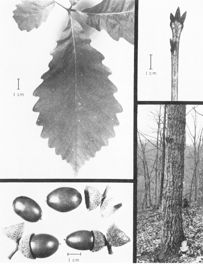 Chestnut Oak, Q. prinus L., resembles swamp chestnut oak, Q. michauxii Nutt., a commercially important tree southwide. Chestnut oak is primarily a northeastern tree, extending into the South along the Appalachian highlands into northern Georgia and Alabama where its range overlaps that of swamp chestnut oak, and its leaves lack the dense pubescence found on those of swamp chestnut oak.