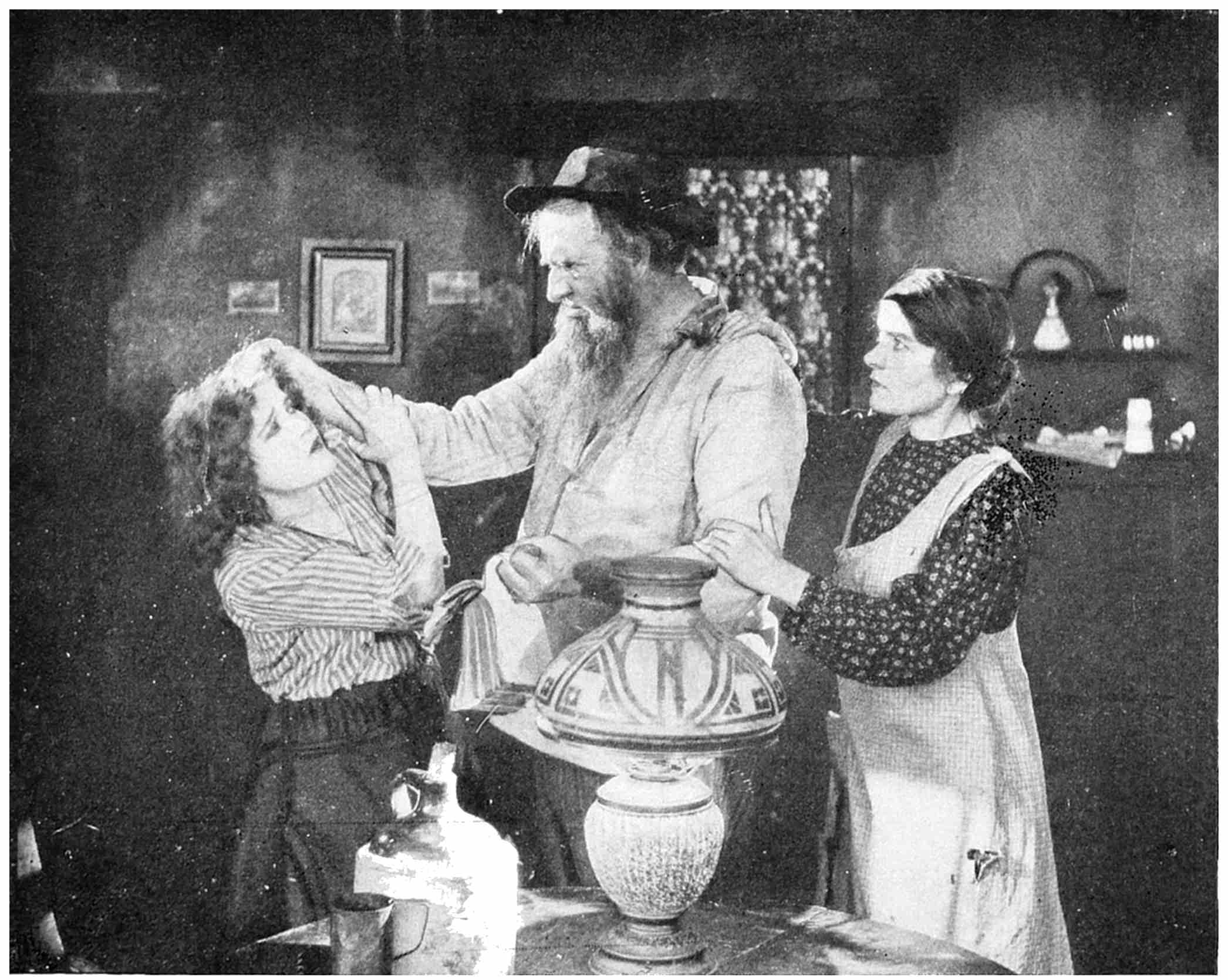 But a photoplay is often robbed of pictorial continuity long before it reaches the exhibitor. The “title-writer,” who frequently combines his office with that of “cutter,” is at best, a dangerous collaborator173 on a photoplay. Words in the form of titles, sub-titles, dialogue, comments, etc., are rarely in place on the screen. If they are admitted for the purpose of telling or explaining a part of the story, they come as a slur on the art of the motion picture, and often as an insult to the intelligence of the spectator.F Nevertheless, the producer finds words practically useful as stop-gaps, padding, and general support for an ill-directed play that would otherwise have to be scrapped. And even the most prominent directors are inclined to lean heavily on words. We are doomed, therefore, to endure the hybrid art of reading matter mixed with illustrations, at least for many years to come. But we insist that this mixture shall be no worse than the director makes it.